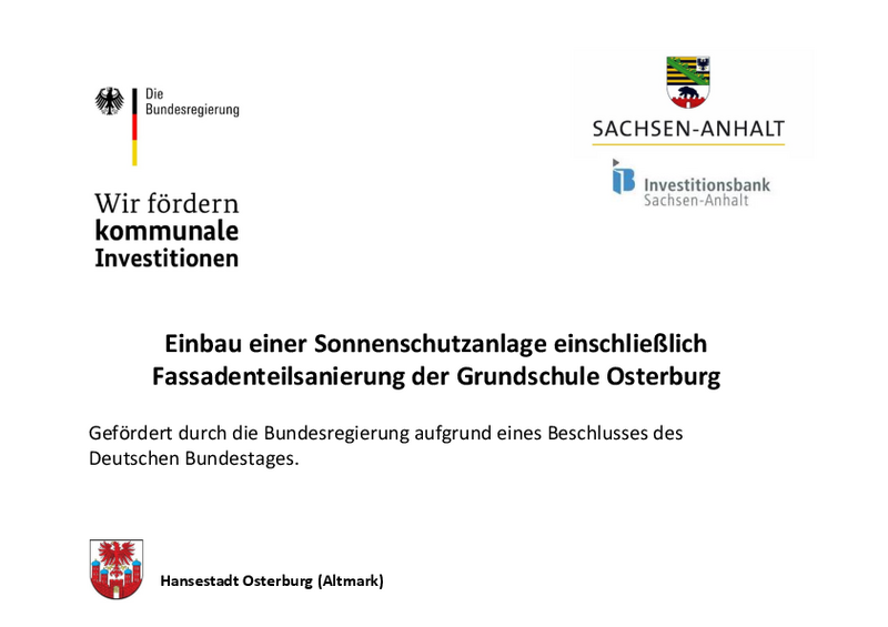 Einbau einer Sonnenschutzanlage einschließlich Fassadenteilsanierung der Grundschule Osterburg,