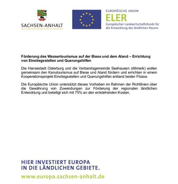 Förderung des Wassertourismus af der Biese und Aland - Errichtung von Einstiegsstellen und Querungshilfen